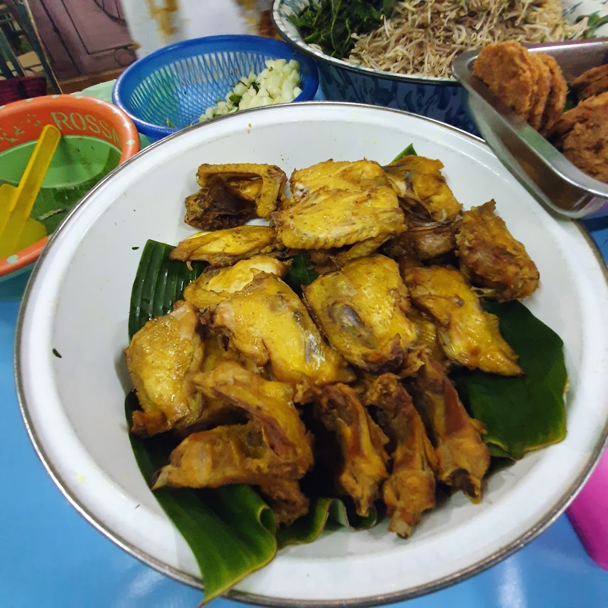 If you're one of those who prefer more unconventional parts of the chicken, Nasi Pecel Mbak Toety has a special dish called Lauk Khusus YG Suka Leher Dan Kepala Ayam, featuring the neck and head of the chicken, providing a rich and flavorful experience for those who enjoy these unique cuts.